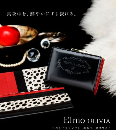 この色、ひとめぼれ。真っ赤なルージュとダルメシアン 二つ折りウォレット女優財布 Elmo OLIVIA (エルモ オリヴィア)