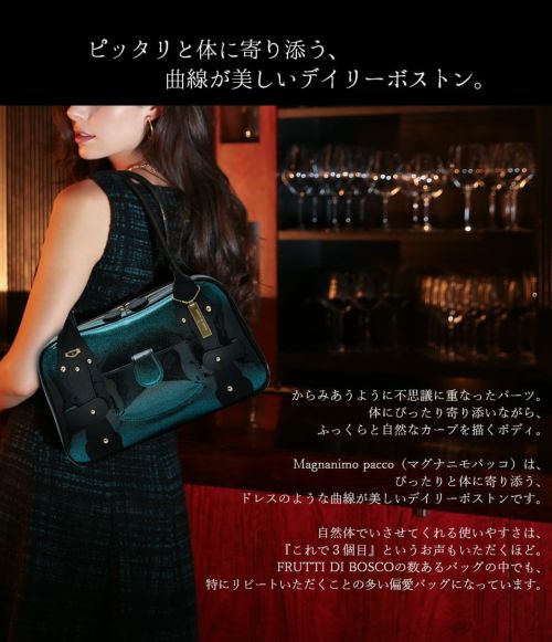 エメラルドの泡、静かな誘惑。翠のシャンパーニュをイメージした特注レザーのB5ボストンバッグ Magnanimo Pacco Emerald Champagne(マグナニモパッコ エメラルドシャンパーニュ)