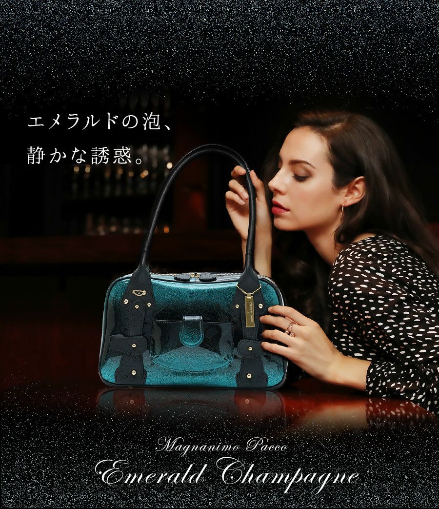 エメラルドの泡、静かな誘惑。翠のシャンパーニュをイメージした特注レザーのB5ボストンバッグ Magnanimo Pacco Emerald Champagne(マグナニモパッコ エメラルドシャンパーニュ)