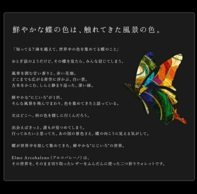 蝶が旅した「にじいろ」の世界を描く二つ折りウォレット女優財布 Elmo Arcobaleno(エルモ アルコバレーノ)