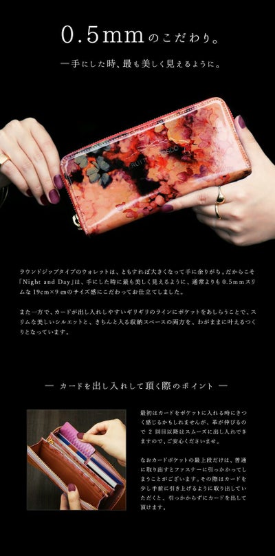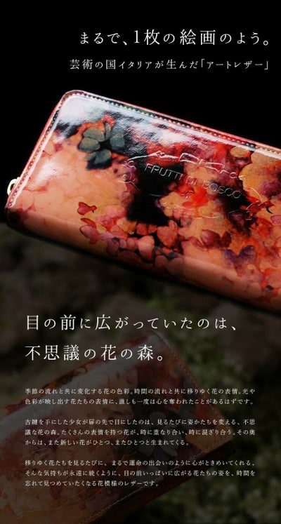 扉を開けて。不思議の花の森の中。“隠しファスナー”のウォレットポーチ Night and Day(ナイトアンドデイ)Alice(アリス)長財布