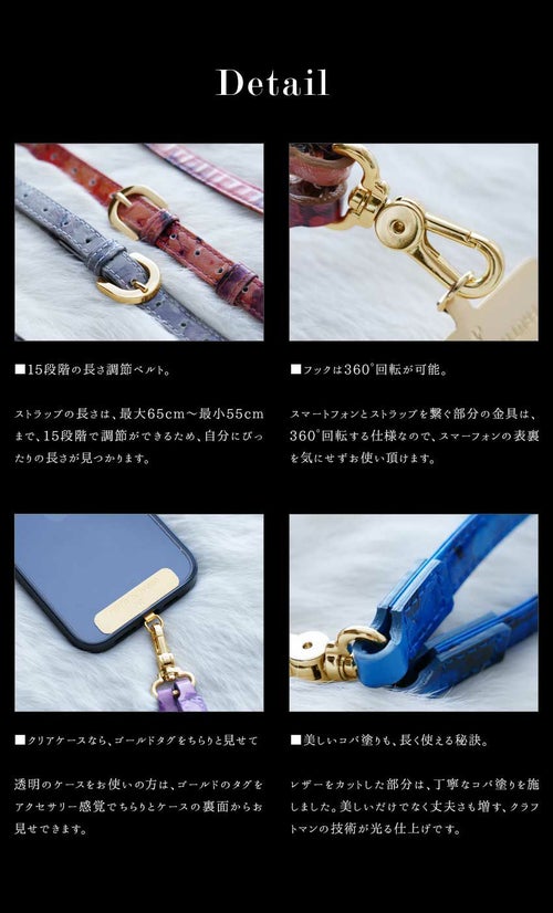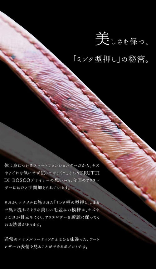 ※こちらのスマホショルダーは1枚の絵画のようなアートレザーを、