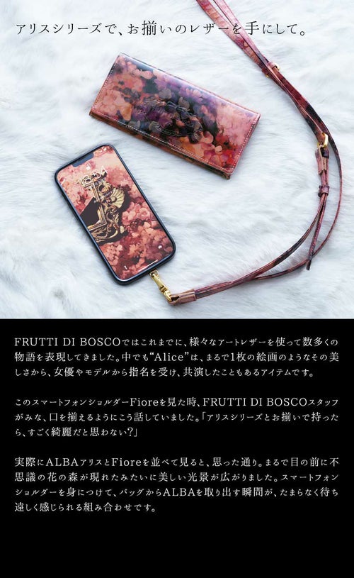 連れてって。花たちが待つ場所へ。スマートフォンショルダー Fiore(フィオーレ)