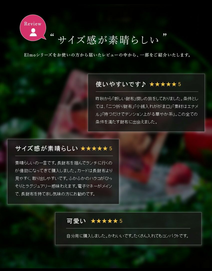 他の画像を見る 人魚姫のご褒美を、めしあがれ。“深海の果実”をイメージしたエナメルレザーで仕立てる二つ折りウォレット女優財布 Elmo Mermaid Berry (エルモ マーメイドベリー) 価格 ¥ 40,700 税込 カートに入れる お気に入りに登録する