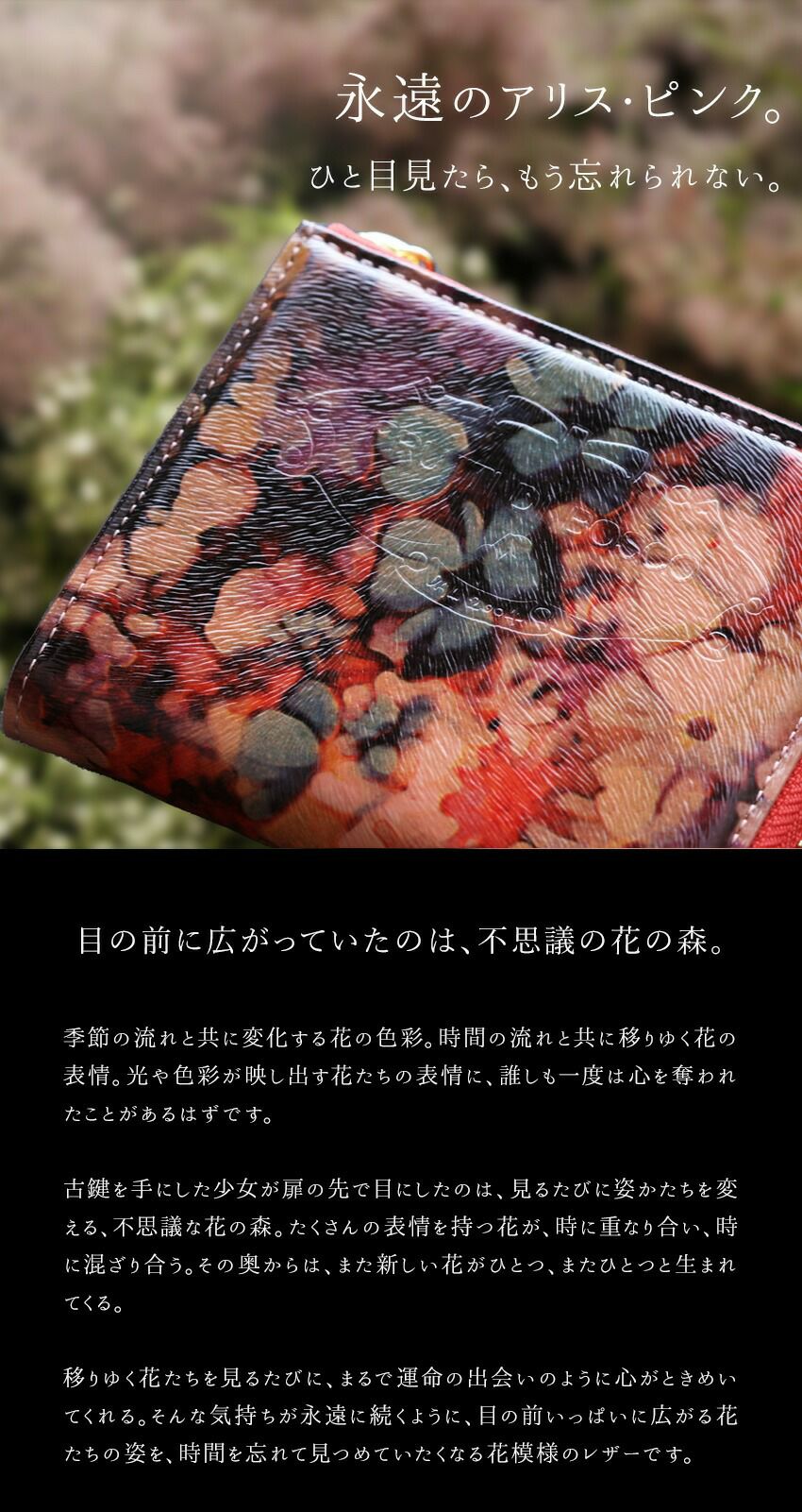 不思議の森の、新しい命が芽生える瞬間を描いた、みずみずしいレザーで仕立てる二つ折りウォレット 女優財布Elmo Alice(エルモアリス) -Brandnew World-(ブランニューワールド) 価格 ¥ 39,600 税込 お気に入りに登録する