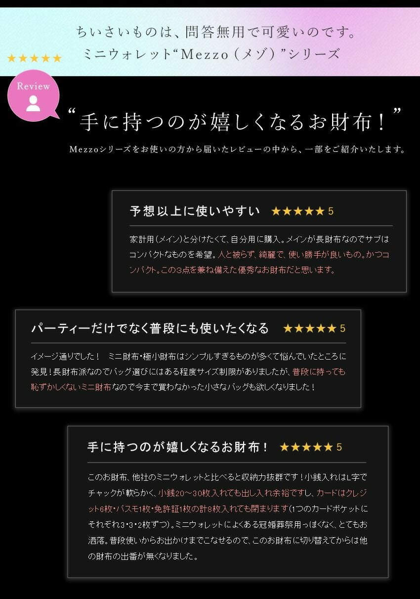 他の画像を見る 「マーメイドベリー」シリーズからミニ財布が誕生!Mezzo Mermaid Berry(メゾ マーメイドベリー) 価格 ¥ 34,100 税込 在庫切れ カートに入れる お気に入りに登録する