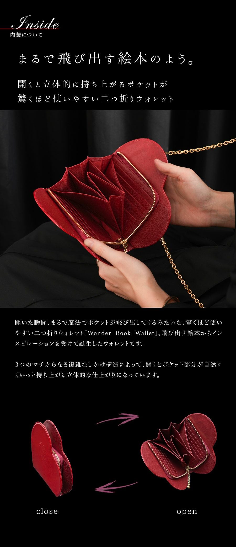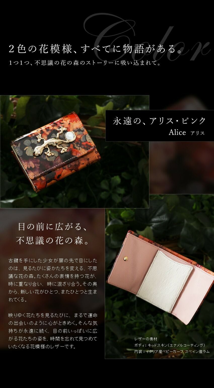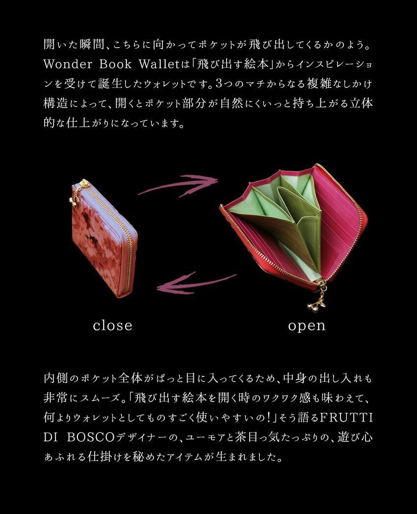 他の画像を見る 扉を開けて。不思議の花の森の中。飛び出す絵本のような二つ折りウォレット Wonder Book Wallet(ワンダーブックウォレット)Alice(アリス) 価格 ¥ 31,900 税込 カートに入れる お気に入りに登録する