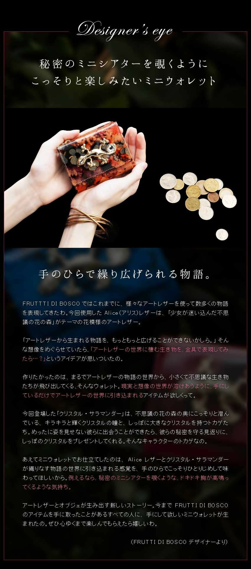 他の画像を見る 輝くために、生まれてきた。ミニウォレット「Mezzo Alice(メゾ アリス) クリスタル・サラマンダー」 価格 ¥ 27,500 税込 在庫切れ カートに入れる お気に入りに登録する