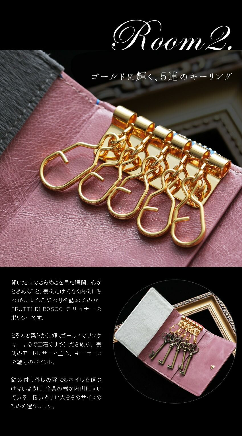 他の画像を見る ポケットにこっそり、甘く酸っぱいベリーたち。 キーケース Chiave marmella(キアーヴェ マルメラ) 価格 ¥ 17,600 税込 在庫切れ カートに入れる お気に入りに登録する