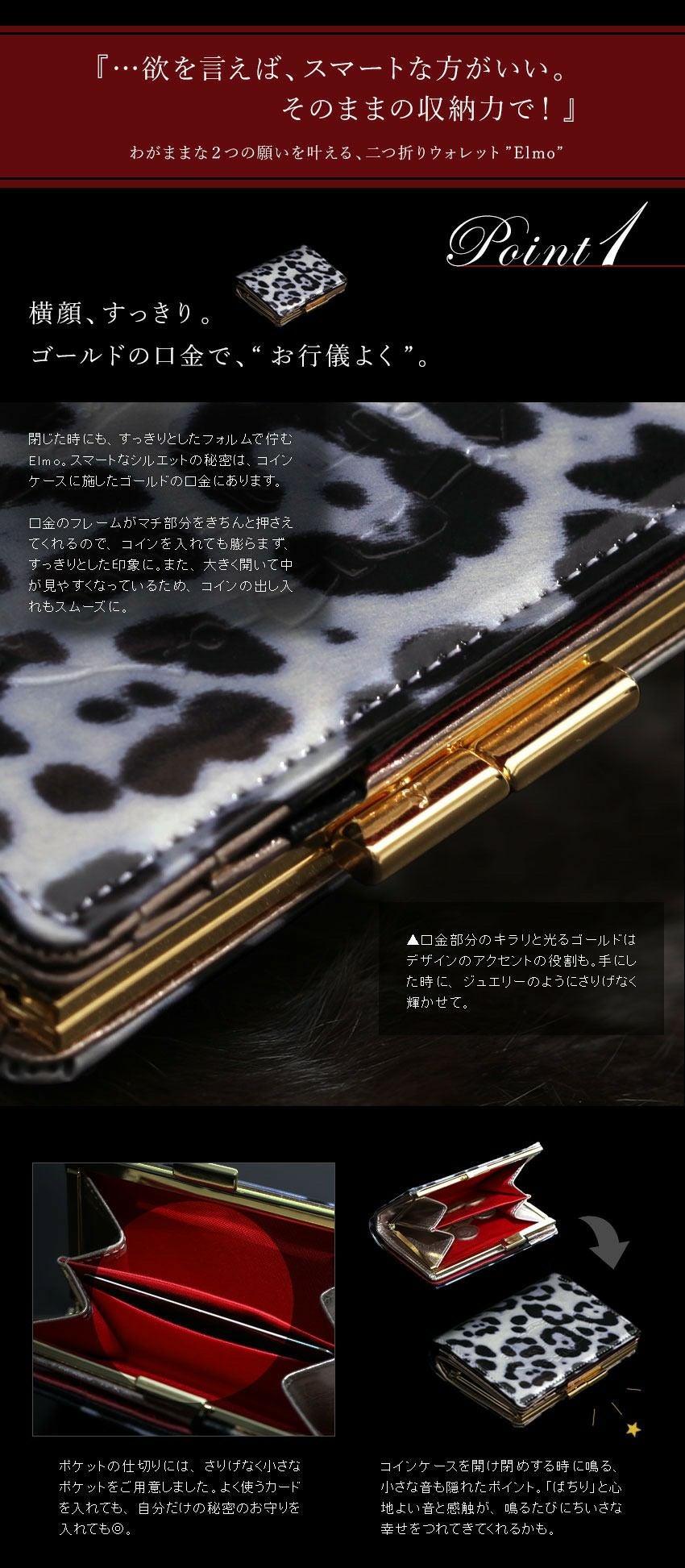 他の画像を見る この色、ひとめぼれ。真っ赤なルージュとダルメシアン 二つ折りウォレット女優財布 Elmo OLIVIA (エルモ オリヴィア) 価格 ¥ 34,100 税込 カートに入れる お気に入りに登録する