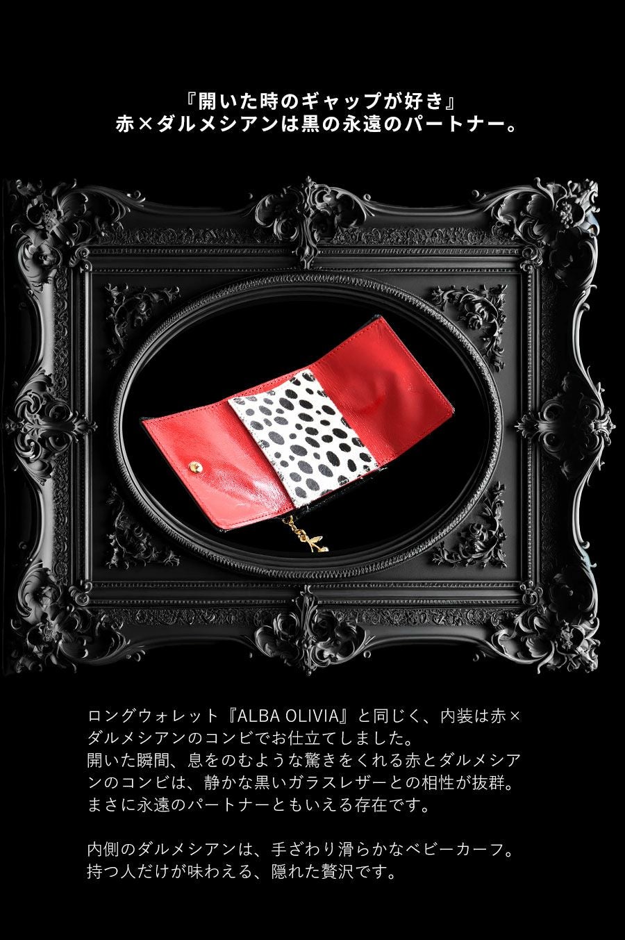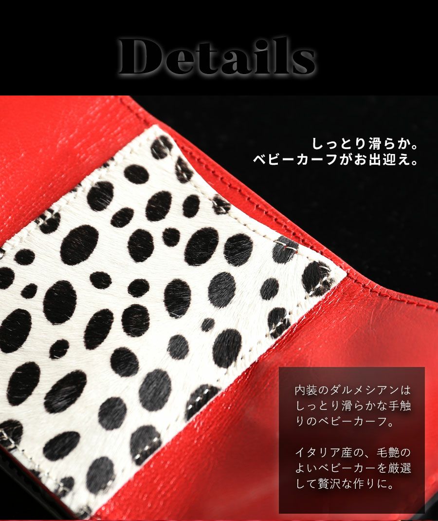 他の画像を見る 真夜中を鮮やかにすり抜ける。真っ赤なルージュとダルメシアンのギャップが魅力。 長財布 ALBA OLIVIA(アルバ オリヴィア) 価格 ¥ 34,100 税込 カートに入れる お気に入りに登録する