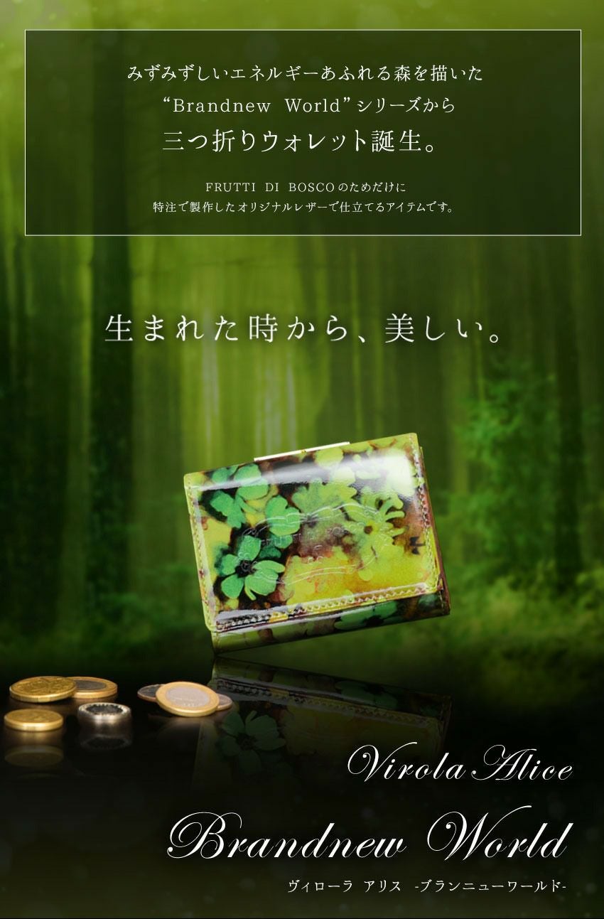 他の画像を見る 生まれた時から美しい、手のひらサイズの三つ折りウォレット Virola Alice Brandnew World(ヴィローラ アリス ブランニューワールド)ミニウォレット 価格 ¥ 27,500 税込 カートに入れる お気に入りに登録する