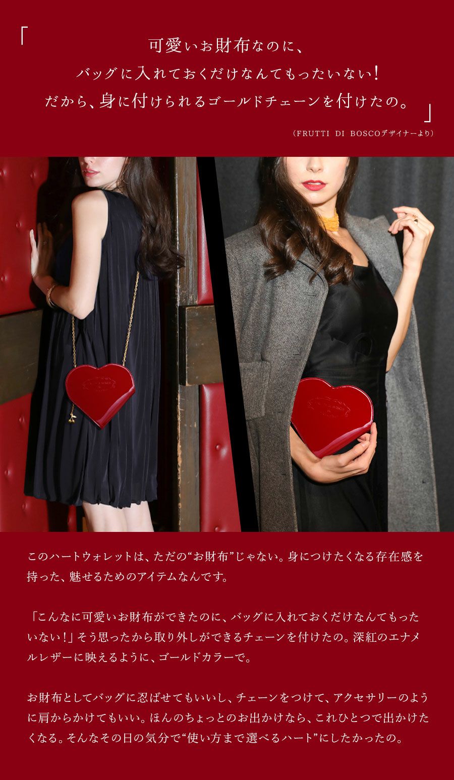 他の画像を見る 惚れたらもう、目が離せない。一瞬で心を撃ち抜く、大人の女性のためのハート財布 Heart Romantica -chain wallet- ハートロマンティカ チェーンウォレット 二つ折り財布 価格 ¥ 57,200 税込 在庫切れ カートに入れる お気に入りに登録する