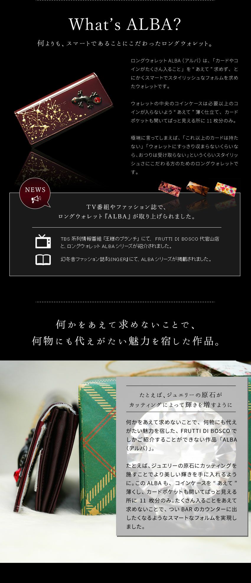 他の画像を見る 生まれた時から、美しい。 長財布 ALBA Alice Brand New World(アルバアリス ブランニューワールド) 価格 ¥ 39,600 税込 カートに入れる お気に入りに登録する